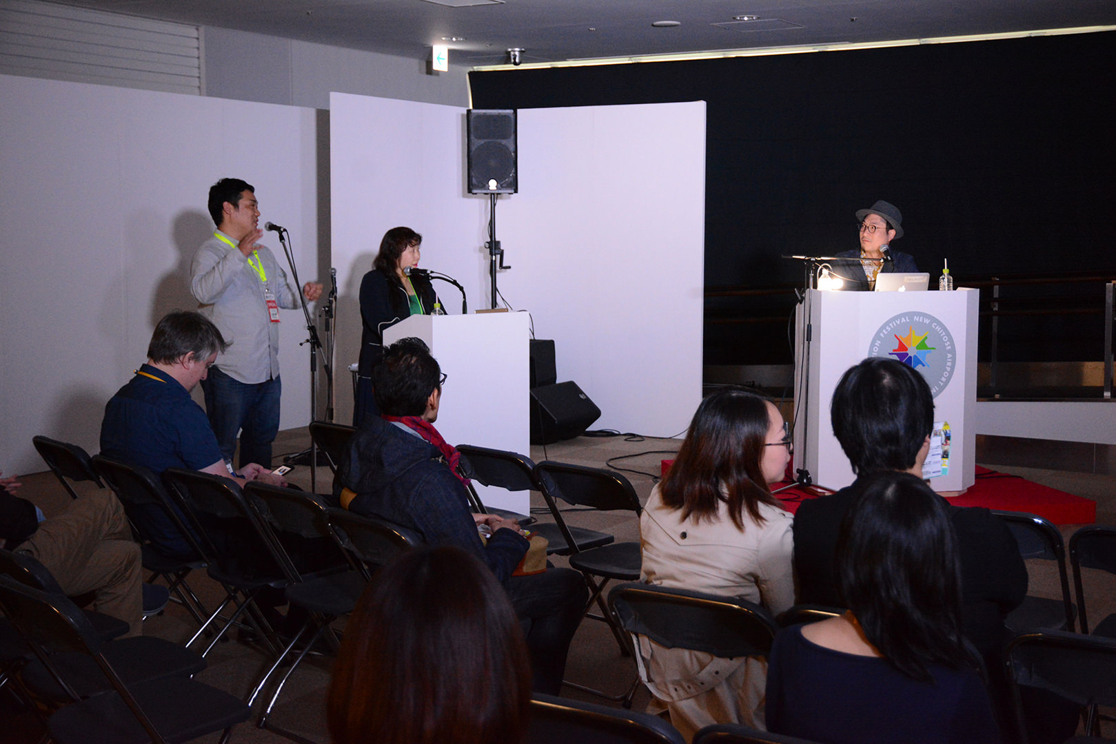 左:フェスティバルディレクター土居伸彰氏、中央:通訳、右:Baiyon氏