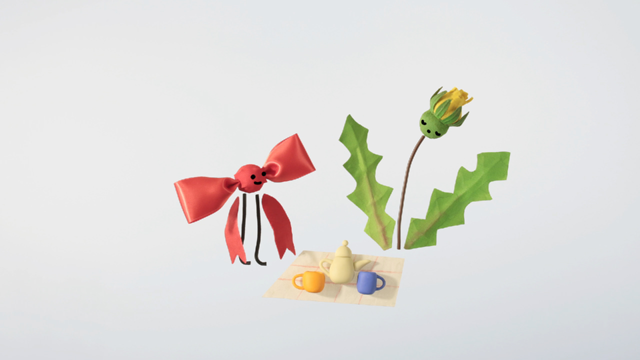 おそらくこの世界は、ユニバース(単一の宇宙)というよりはマルチバース。かたち、色、音が舞う、魔法のような世界。踊り、発見し、自分自身の世界を作り上げるキャラクターたちは、この作品を作り出した作家そのものです。あらゆる出来事が、平穏さ、喜び、強烈な優しさと共に起こります。あらゆるものが、それよりも大きな何かの一部です。時間も空間も、この世界では、固有のロジックとダイナミズムを持っています。
