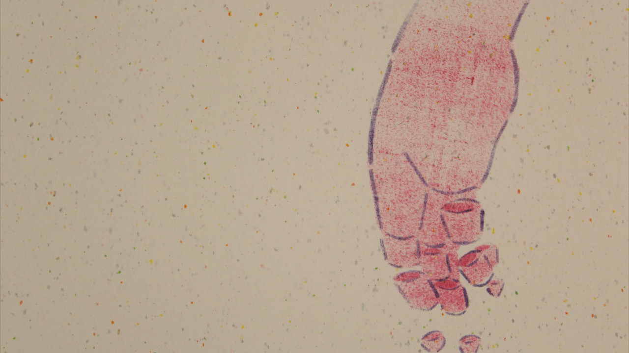 透明な素材に描かれた2人の少女の表現が、新しい可能性の開花を感じさせました。彼女らの透明な身体は、文字どおり透き通るような純粋さを表現しています。しかし同時に、その身体が触れあうとき、透明な身体の内部に隠れる、生々しい肉体のうごめきが現れて来ます。そしてその肉体は思春期の彼女らを不可避的に大人へと変化させてゆき、彼女たちの関係もギクシャクしたものへ変わっていってしまいます。そのような、思春期の繊細な物語と、実験的な表現手法が分かち難く結びついた、とても力強い作品です。