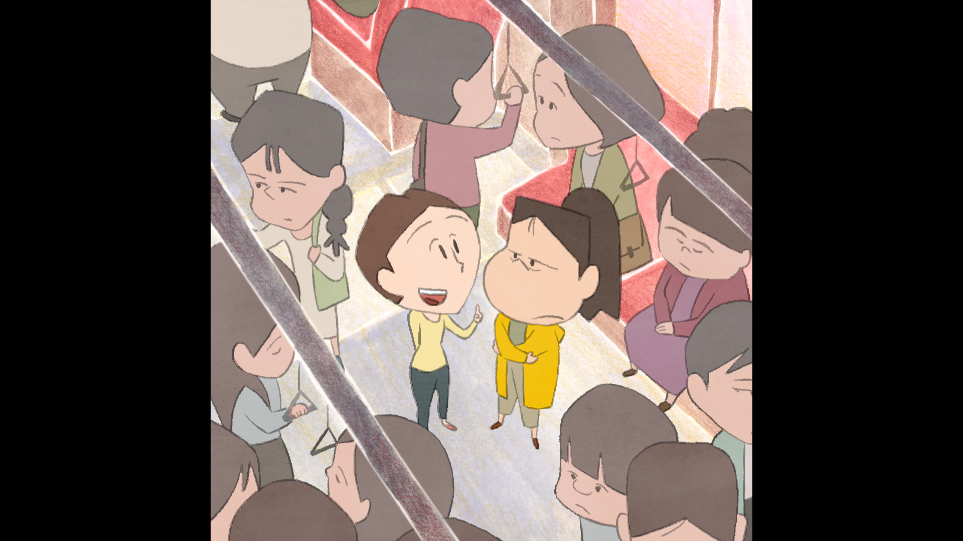 This film succeeded in creating a unique narrative structure, by contrasting a helpless classroom learning a recorded fake world with the rough outside world while having a window between them. And it asks what we must do to survive. Individual graphic style created with pencil drawing cutout, eraser powder and shadows made the film even original and impressive.