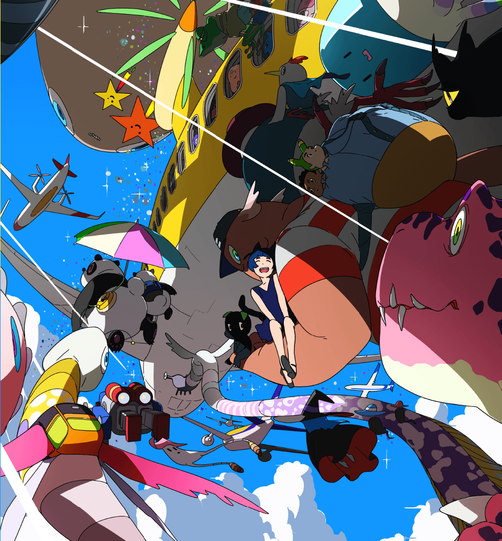 様々な国から様々な人種、様々な作品が新千歳空港に向かって飛んでいく……そんなイメージでイラストを制作させていただきました。楽しい4日間になりますように!