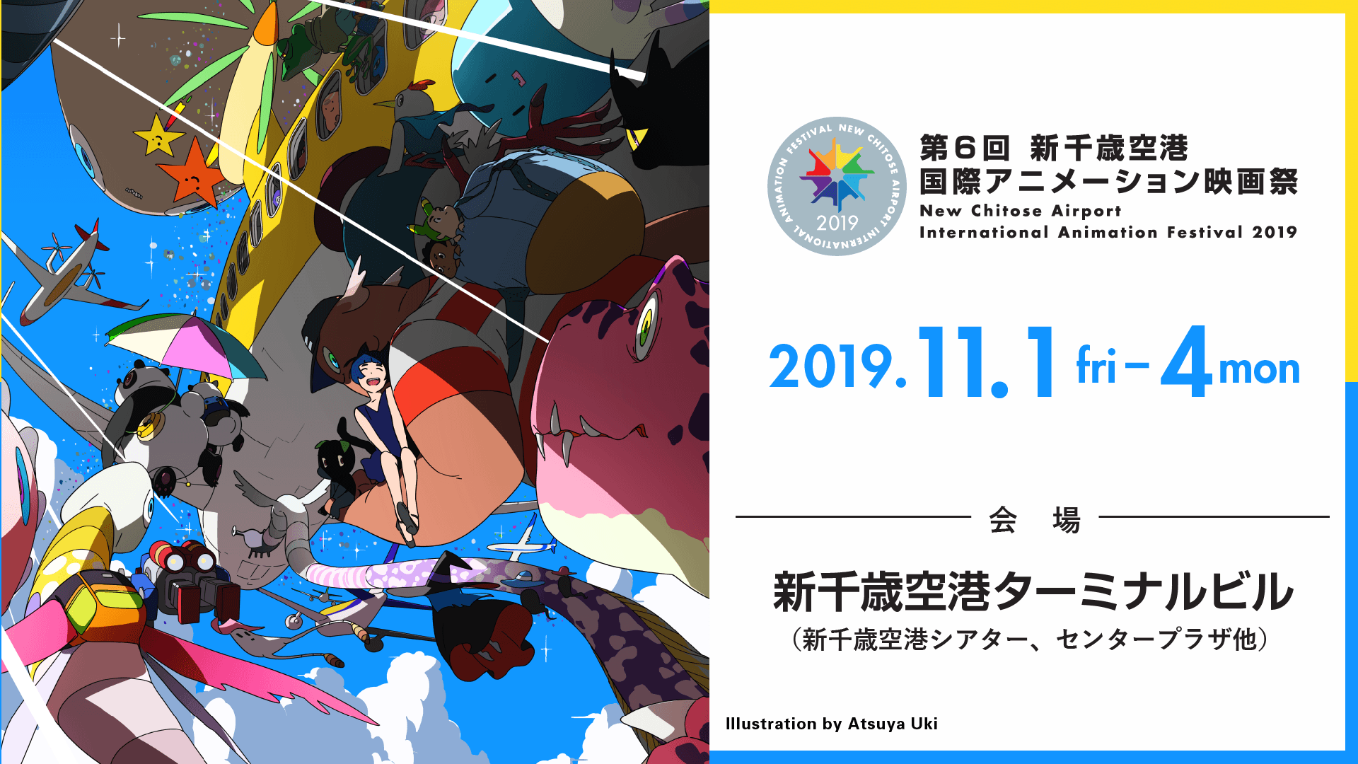 第6回新千歳空港国際アニメーション映画祭を飾るメインビジュアルを担当くださったのは、アニメ、漫画、イラストと多岐に渡る活動をされ、今年2019年には劇場作品『センコロール コネクト』が公開された札幌出身・宇木敦哉さんです!本メインビジュアルは、新千歳空港ターミナルビル内をはじめ、全国にポスターを展開していきますのでご注目ください!