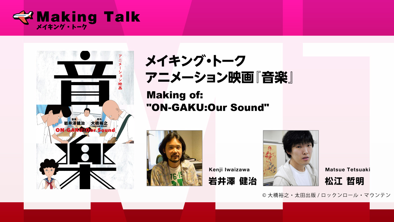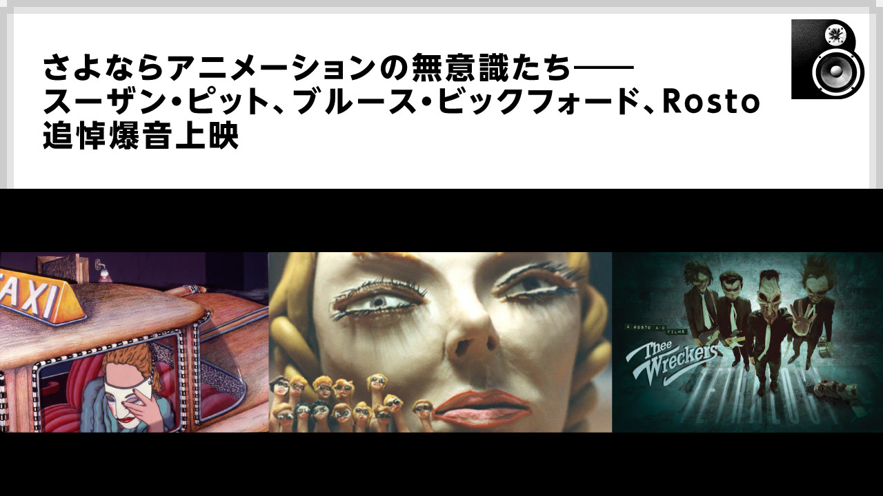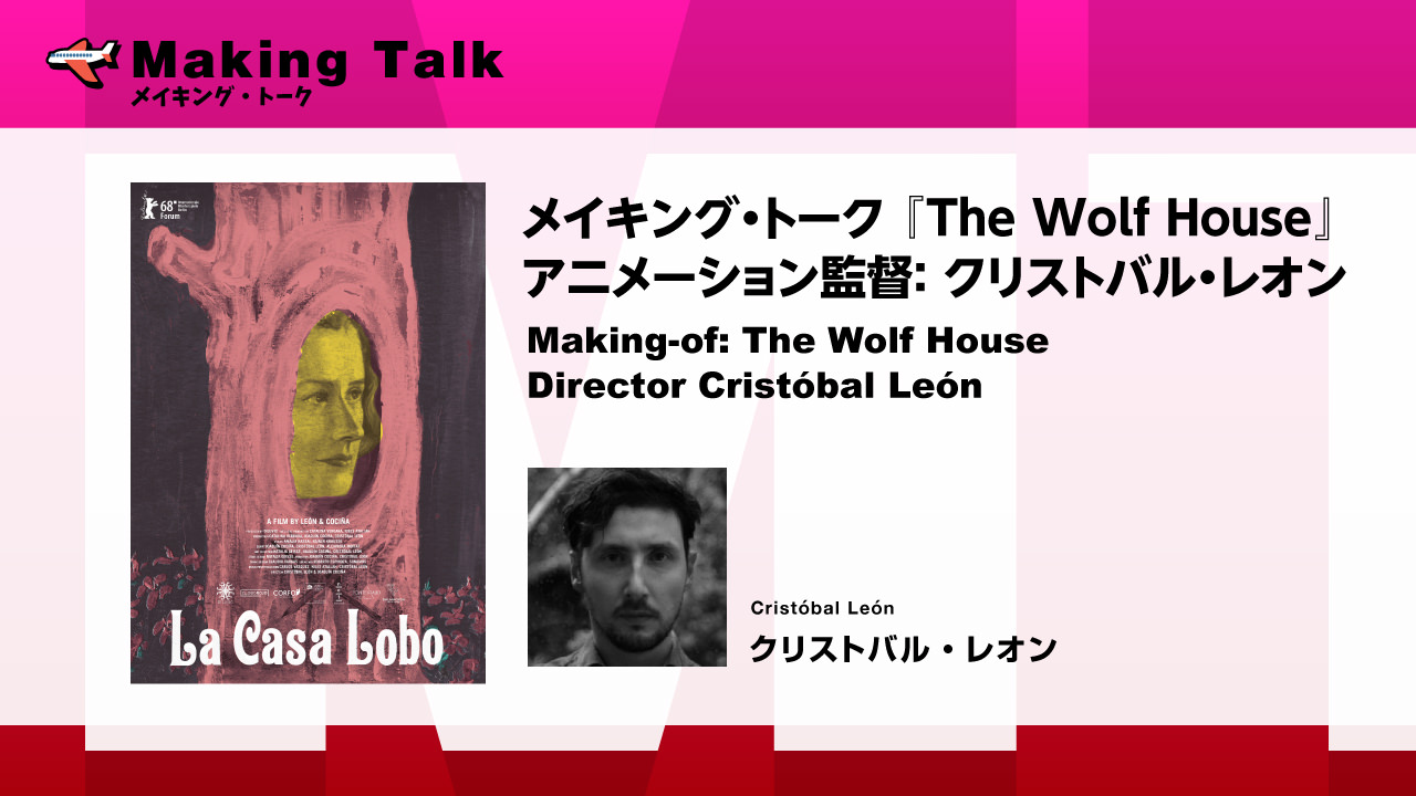 NEW CHITOSE 2019 PROGRAMS 2019 SHORT FILM COMPETITION インターナショナルコンペティション1International Competition 1 インターナショナルコンペティション2International Competition 2 インターナショナルコンペティション3International Competition 3 インターナショナルコンペティション4International Competition 4 インターナショナルコンペティション・ファミリーInternational Competition Family 日本コンペティションJapan Competition ミュージックアニメーションコンペティションMusic Animation Competition 学生コンペティションStudent Competition FEATURE FILM COMPETITION Away 2019 | Latvia | 1:14:42 Gints ZILBALODIS 失くした体I Lost My Body 2019 | France | 01:21:00 音楽ON-GAKU:Our Sound 2019 | Japan | 1:08:00 岩井澤健治 (IWAISAWA Kenji) The Wolf House 2018 | Chile | 1:13:28 Cristobal LEÓN, Joaquín COCIÑA Ville Neuve 2018 | Canada | 1:16:00 Félix DUFOUR-LAPERRIÈRE SHOWCASE インターナショナルショーケースInternational Showcase アジアンショーケースAsia Showcase NEW CHITOSE FOCUS 爆音上映『プロメア』BAKUON screening of PROMARE 人気TVシリーズ「天元突破グレンラガン」(2007)、「キルラキル」(2013)の最強の二人、アニメ... 爆音上映『銀河鉄道の夜』Bakuon Screening: Night on the Galactic Railroad 杉井ギサブロー監督など豪華スタッフが集結! 「タッチ」や『グスコーブドリの伝記』などを手がけ、201... 辻川幸一郎 爆音上映+トーク~Corneliusから”てっちゃん”へ~Bakuon Screening: Retrospective of Koichiro Tsujikawa From Cornelius to Tecchan 日本を代表する映像作家 辻川幸一郎を映画祭に迎えての特集上映を開催します。盟友Corneliusのた... さよならアニメーションの無意識たち――スーザン・ピット、ブルース・ビックフォード、Rosto追悼爆音上映Farewell to Animated Unconsciousness: Suzan Pitt, Bruce Bickford, Rosto In 2019, three great animation filmmakers passed a... 爆音上映『AKIRA』BAKUON screening of AKIRA 2014年、本映画祭での上映時に2回とも満員御礼を記録した大友克洋監督『AKIRA』爆音上映が、映画... アニメ特撮アーカイブ機構セレクション テレビシリーズ『宇宙戦艦ヤマト』ATAC selection: TV Series "Space Battleship Yamato" 1974年(昭49)に日本テレビ系で放送された人気アニメ『宇宙戦艦ヤマト』。このプログラムでは本作の... センコロール コネクトCENCOROLL CONNECT 札幌出身の宇木敦哉監督がほぼ一人で作り上げ、熱狂的な支持を得た伝説の短編アニメーション『センコロール... 北海道現代アニメーション総進撃!2019Advancing Hokkaido Contemporary Animation! 2014年から毎年開催している、北海道在住または出身作家による最新アニメーション作品特集「北海道現代... マスタークラス 映画祭アーティスティックディレクターダニエル・スールジック「ザグレブ国際アニメーション映画祭受賞作品&クロアチア作品 ベストセレクション」Masterclass Daniel Šuljić ”Selection of award-winning and Croatian films from recent editions of Animafest Zagreb” 1972年より世界最高のアニメーションを祝福する――Animafest Zagreb ザグレブ国際ア... マスタークラス 映画祭ディレクター ジャネット・ボンズ 「GLASアニメーション映画祭プレゼンツ アメリカン・インディペンデント」Masterclass Jeanette Bonds "GLAS Animation Festival Presents American Independent" 設立当初から、GLASはアメリカのインディペンデント・アニメーションの重要性を常に強調してきました。... マスタークラス チョン・ダヒ「夢想家もまた夢見られている」Masterclass Dahee Jeong ”A Dreamer, Being Dreamed” チョン・ダヒのアニメーションは、映画による時間と空間の研究です。その関心は、映画館という空間、スクリ... マスタークラス 和田淳特集上映「和田淳作品集2005-2019」Masterclass Atsushi Wada ”Atsushi Wada Works 2005-2019” 「間」と「気持ちのいい動き」を大きなテーマに作品をつくっています。このふたつを強く意識し始めた作品『... メイキング・トーク 『The Wolf House』 アニメーション監督: クリストバル・レオンMaking-of: The Wolf House Director Cristóbal León 短編部門国際審査員でもある、本作の監督クリストバル・レオン氏をお迎えし、本作の制作背景についてのメイ... SCREENING & TALK AT PORTOM HALL TVアニメ『邪神ちゃんドロップキック』スペシャルイベント 「北サバト in NEW CHITOSE 2019」 千歳市出身の人気声優鈴木愛奈さんが主演を務める2018年夏に放送されたアニメ「邪神ちゃんドロップキッ... TVアニメ化決定!!奇跡のイリュージョン、ここに開演!「はてな☆イリュージョン」TVアニメ放送決定記念 スペシャルトークイベント! 今年最高のイリュージョンを新千歳空港で楽しもう! 新千歳空港国際アニメーション映画祭特別プログラムと... 2020年4月TVアニメ化記念 新千歳空港国際アニメーション映画祭『波よ聞いてくれ』特別プログラム北の大地より開幕! 講談社「アフタヌーン」にて好評連載中の『波よ聞いてくれ』が2020年4月にTVアニメ化決定! 『無限... TVアニメ第三期製作決定記念ッッ!!!『ゴールデンカムイ』セレクション上映会&トークショー キャスト3名によるトークショー付き豪華上映会! 原作は「週刊ヤングジャンプ」(集英社)にて連載中の、... ADMISSION